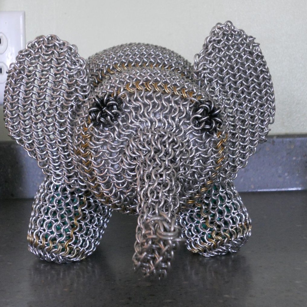 18. One of the pioneers in chainmaille “inlays” is user Chimney Duck of MailleArtisans.org. He is known for his realistic inlays of animals. From what we remember from posts years ago on chainmaille forums, he weaves these free-handed, meaning he doesn’t use a computer-generated program, coloring paper, or any other pattern to help him know when to switch colors. Amazing!