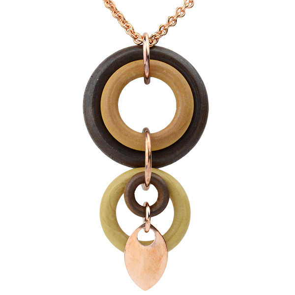 Autumn means cooler air and the need for (chainmaille) layers! We've added some new, bohemian-style wooden rings to our newest design, Layered Loops. This necklace is a statement piece; kits include 2 feet of chain so you can wear it over a sweater. The largest wooden ring measures 40 mm (1.5"), the total length of the centerpiece is 83 mm (3.25"). Kits include copper finished findings and a pure copper scale.