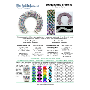 Ah, the amazingly tactile and flexible dragonscale weave! This weave is actually two layers of European 4-in-1, in which the small rings fit exactly inside the large rings. This can be a difficult weave to get started, but our instructions are detailed enough to help you conquer this weave once and for all! We highly recommend using colored rings for the small rings; not only does it make the piece easier to learn, but the resulting bracelet will have a cool, iridescent look to it!