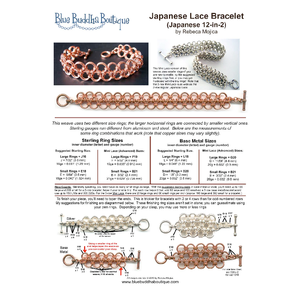 With this tutorial you can create a 3-row cuff using a classic Japanese 12-in-2 weave. This stunning cuff is sturdy and holds it's shape nicely. Add more rings to create an even wider cuff. Or, stop after 2 rows for a narrower bracelet. Once you're comfortable with the weave, make an intricate "mini" version with thinner gauge rings.